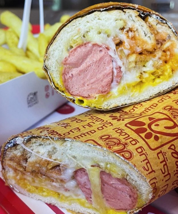 هات داگ ، سس مخصوص ، چیپس ، پنیر پیتزا